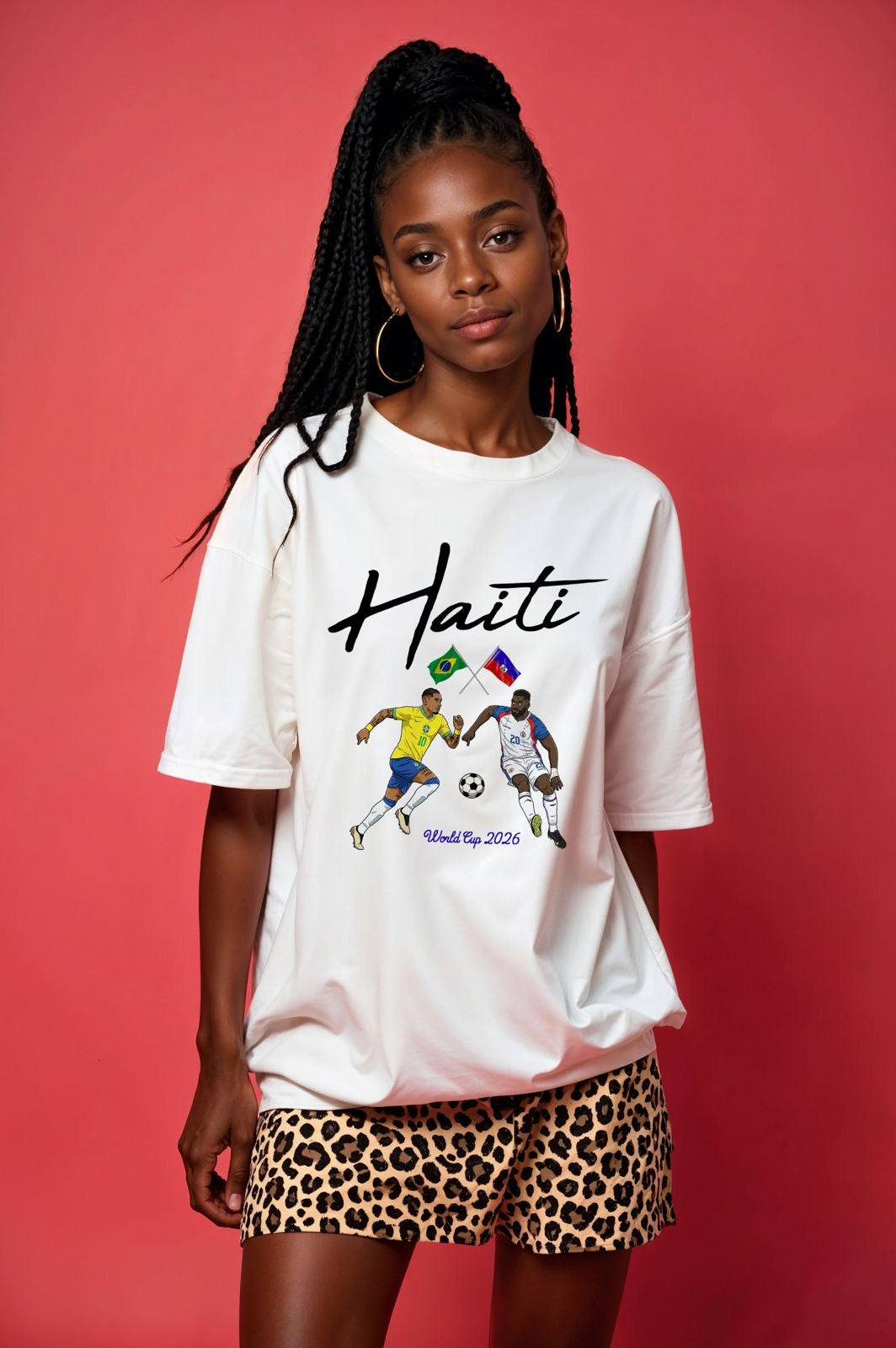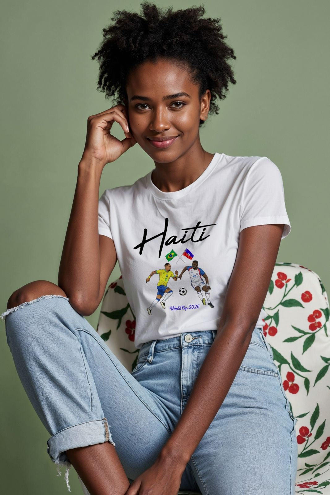 Haiti / Brazil World Cup 2026 T-Shirt Celebrate the upcoming FIFA World Cup with this commemorative tee honoring two passionate football nations. Featuring bold graphics representing Haiti and Brazil's iconic colors and heritage, this shirt captures the spirit of international competition. Crafted from quality cotton, it delivers comfort for everyday wear while making a statement about your love for the beautiful game. Perfect for fans, collectors, or anyone eager to show support for these dynamic teams as they compete on soccer's grandest stage.