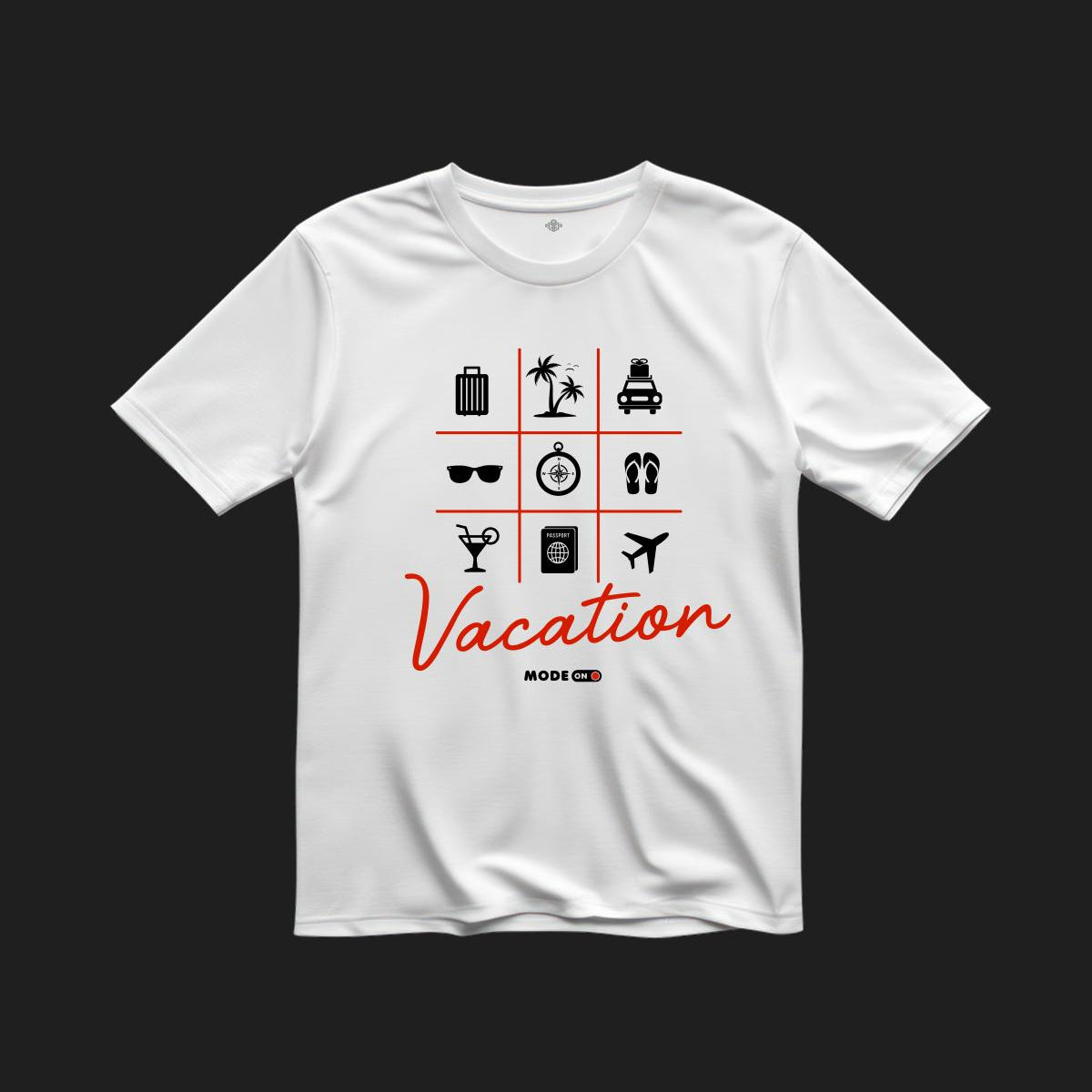 “Vacation Mode: ON! This stylish and comfy t-shirt is perfect for all your getaway adventures. Made from soft, breathable fabric, it keeps you cool whether you’re basking in the sun, exploring new places, or just relaxing. With a fun, travel-inspired design, it’s a must-have for your next trip. Pack it, wear it, and let the good times roll!”